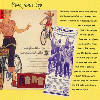 "Hollywood ajudou a romantizar o jeans nas décadas de 1920 e 1930, vestindo as calças em cowboys interpretados por atores como John Wayne e Gary Cooper. Essa nova imagem glamorosa chegou aos consumidores que buscavam roupas casuais e lúdicas para usar nos finais de semana e feriados. Fotos publicitárias de atrizes como Ginger Rogers e Carole Lombard vestindo jeans ajudaram a convencer as mulheres de que o estilo era para elas também. Na década de 1930, a Vogue deu seu selo de aprovação, chamando o jeans de “western chic”. Vogue|DossiêAlém disso, durante a Segunda Guerra Mundial (1939-1945), os soldados dos Estados Unidos usavam uniformes que eram confeccionados com denim, o que agregou uma imagem de virilidade ao modelo. A partir daí, o jeans ganhou status, ficou conhecido internacionalmente e foi batizado com o nome do alemão Levi Strauss, que apresentou a prática e confortável calça depois de chegar aos EUA como imigrante.
